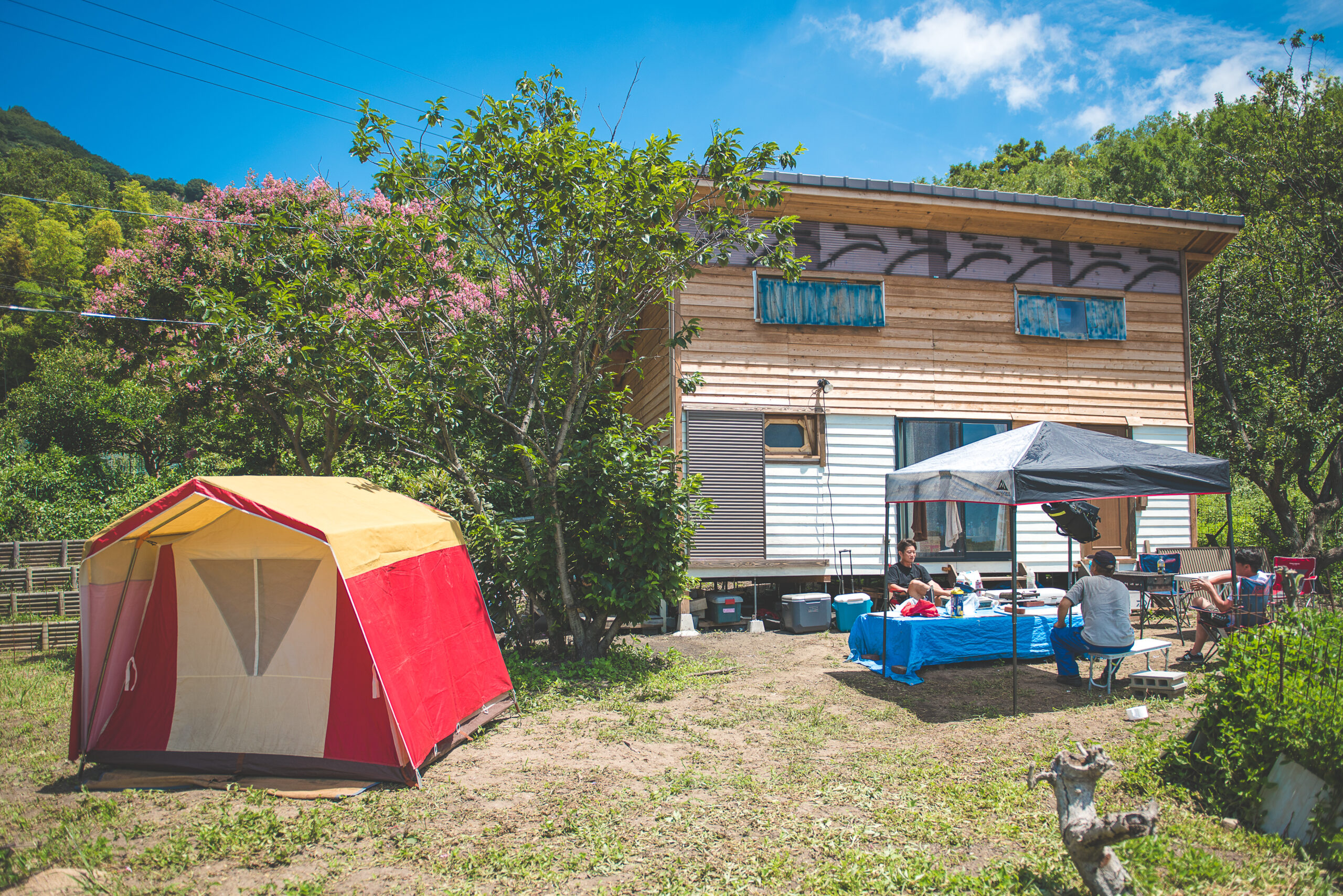 家族や仲間だけで島時間を楽しめる。テントなど貸し出しあり、トイレやキッチン、エアコン付きの小さなコテージも利用できる。海にも徒歩1分という立地。