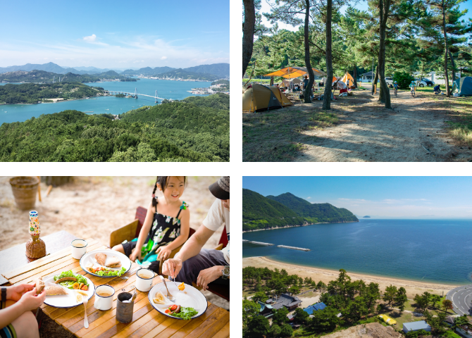 上島町の島々に点在する3つのキャンプ場は、それぞれ個性豊かな