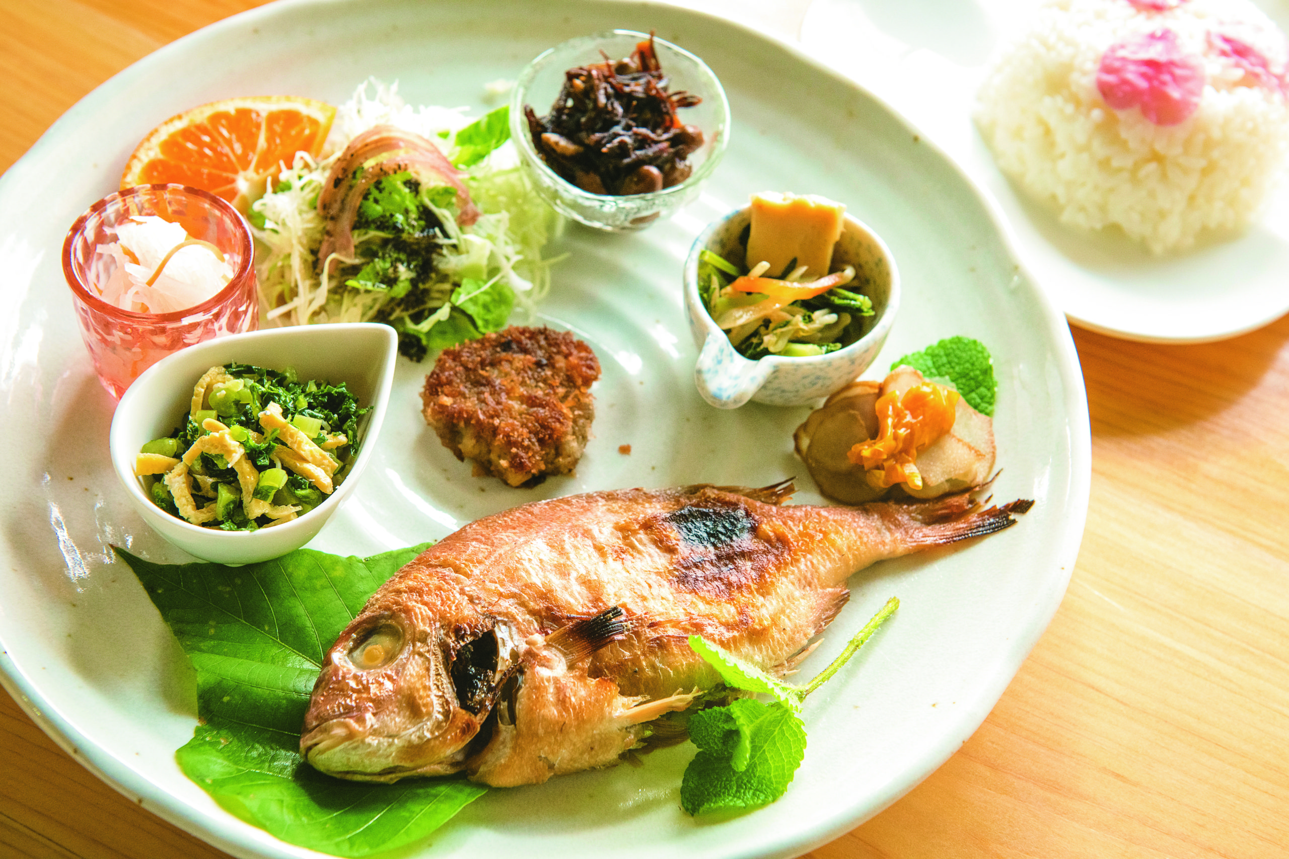 オススメは島で取れる野草や海藻づくしの「摘み菜ランチ」島で育った野草パワーを体に取り入れよう。
