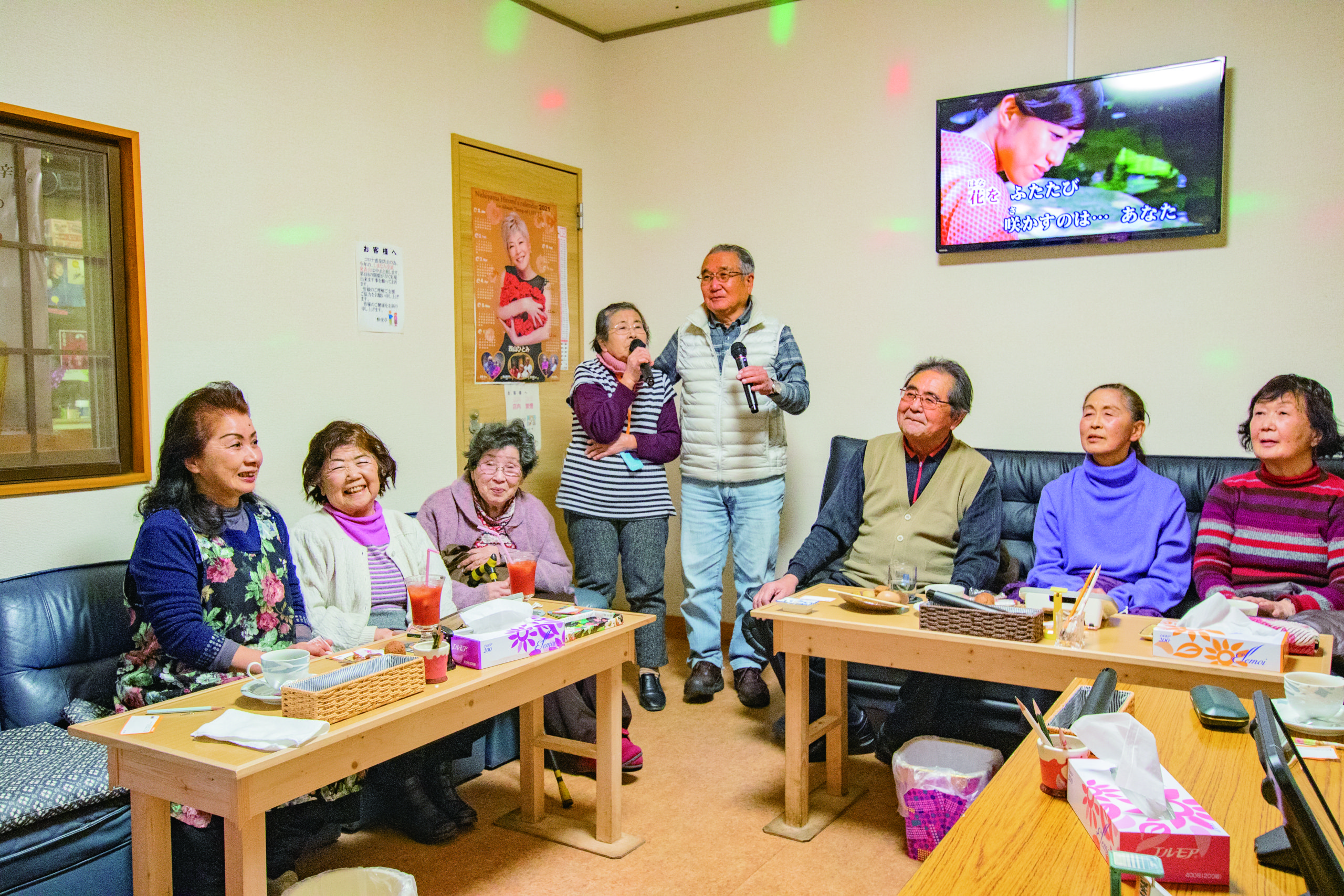 カラオケではママがあたたかくおもてなし。