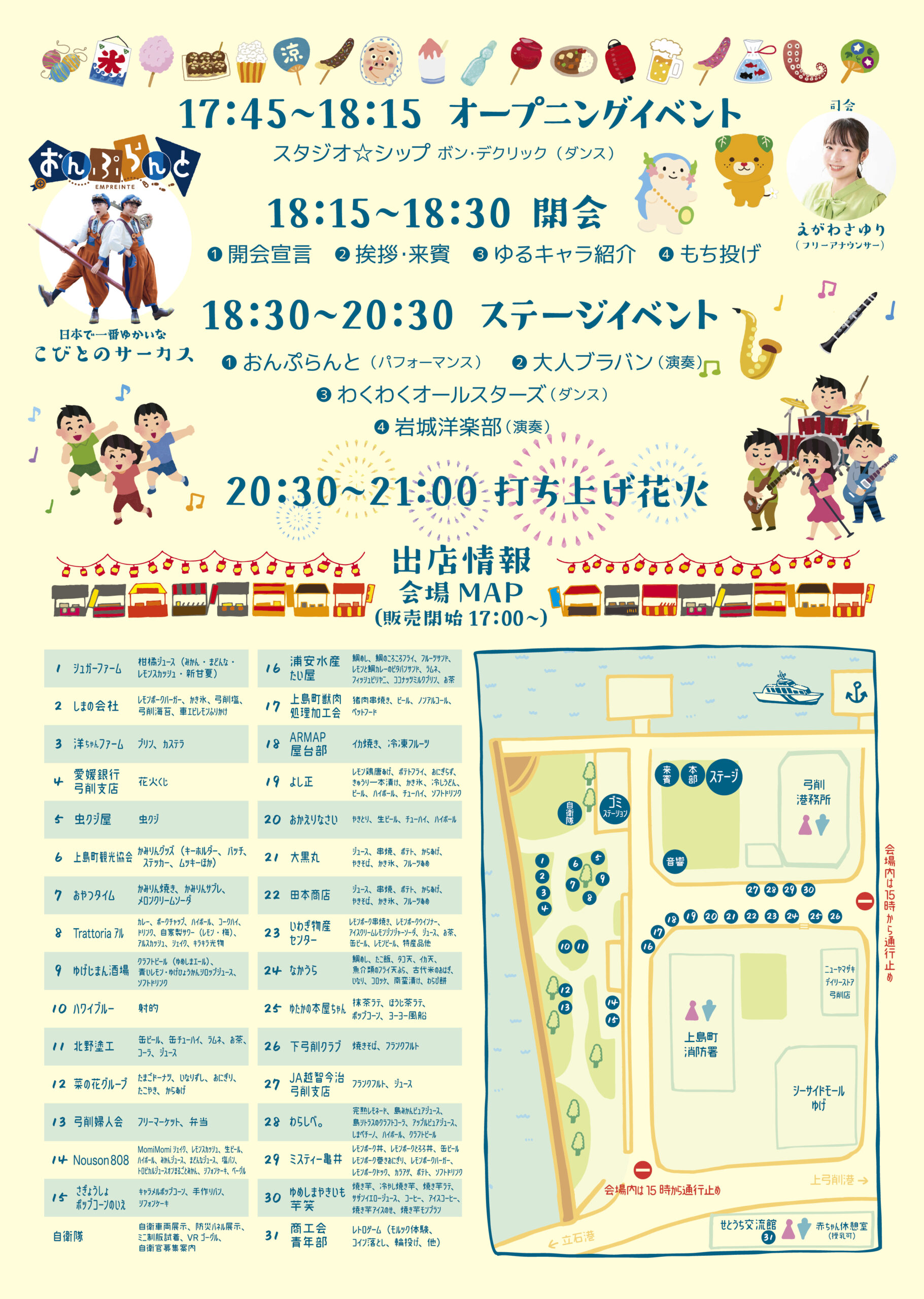 今年も開催します。 ステージイベント、もち投げ、31店舗の出店、そして、大迫力の打ち上げ花火!