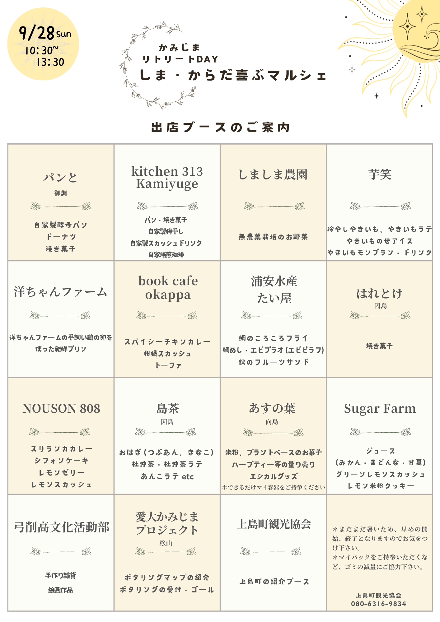 地産地消、体や環境にやさしい、をキーワードに上島町内外からの出店。