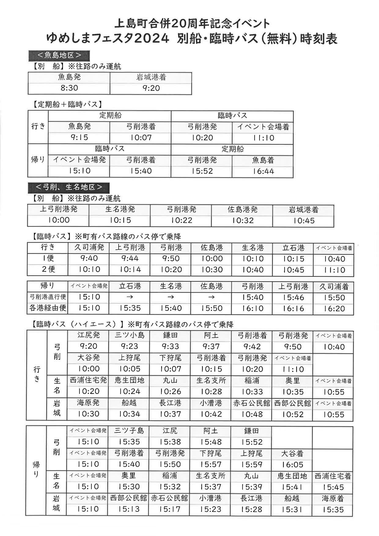 » 別船・臨時バス(無料)時刻表PDF(ダウンロード)