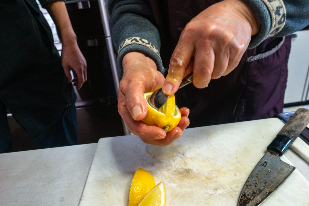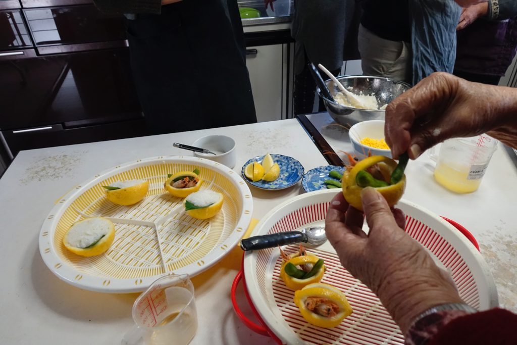 そんなパワフルで魅力的なでべそおばちゃん達に教えてもらいながらレモン懐石をつくっていきます♪