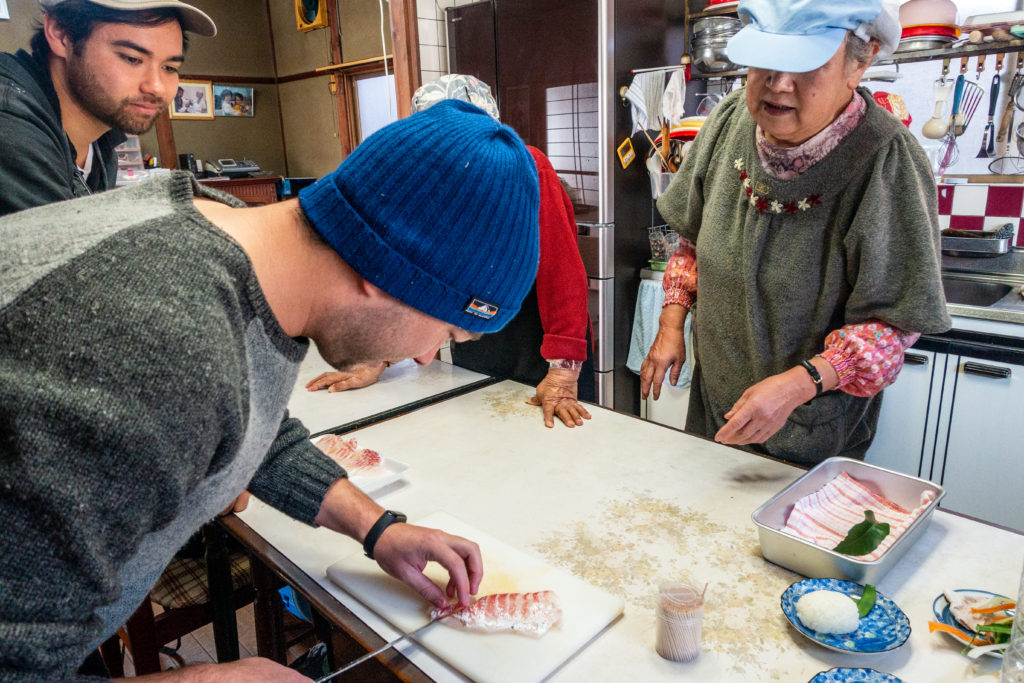 おばちゃんに、失敗してもあんた達が食べるんやから気にしなくて大丈夫!と応援してもらいながらなんとか切れました!Good job!
