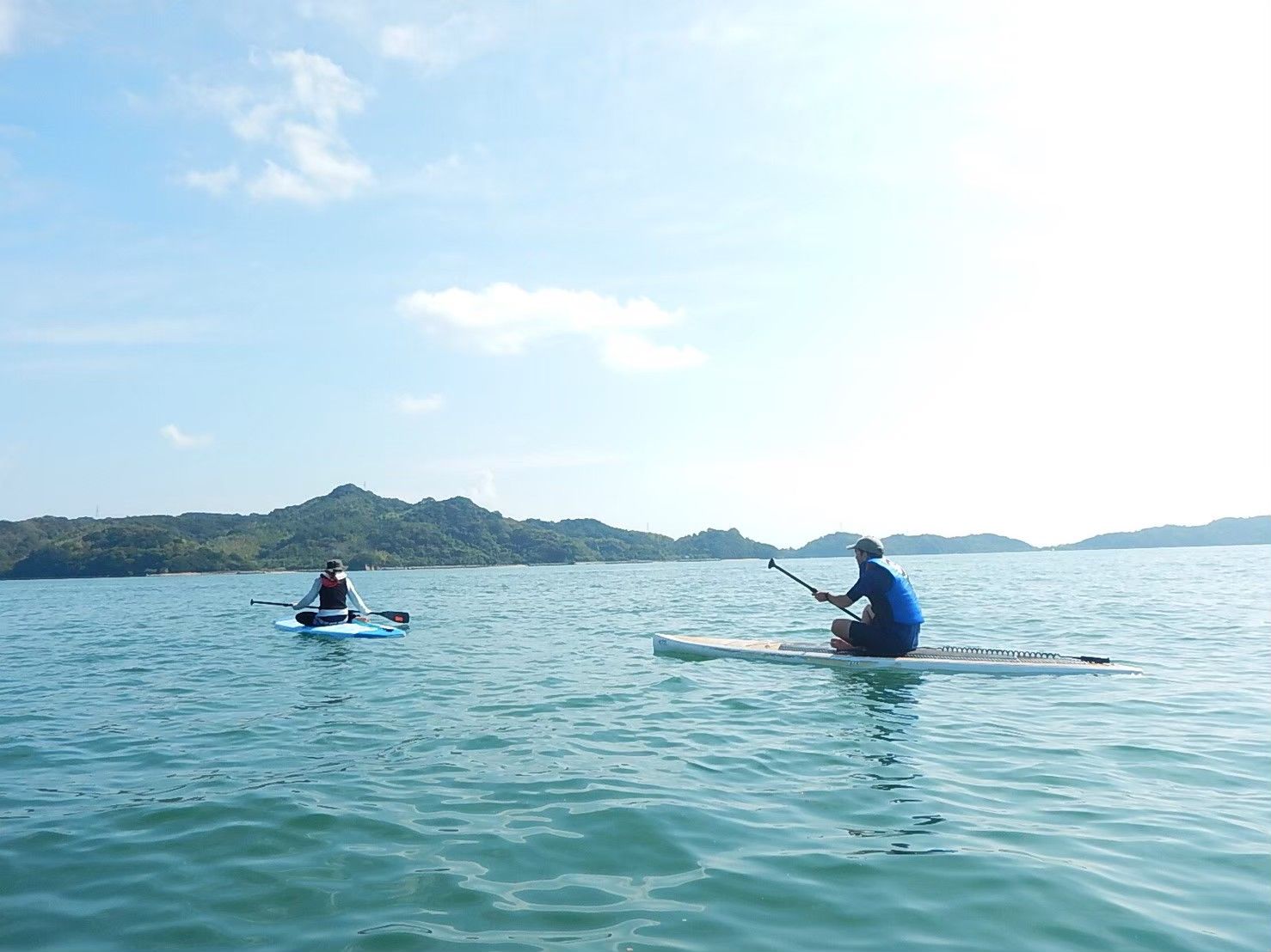 山側に向かって漕ぐと、少し紅葉がかった綺麗な山が見え、防波堤を越えるとキラキラと輝いた瀬戸内の景色が広がって海を独り占めしている気分です。本当に贅沢な時間でした。