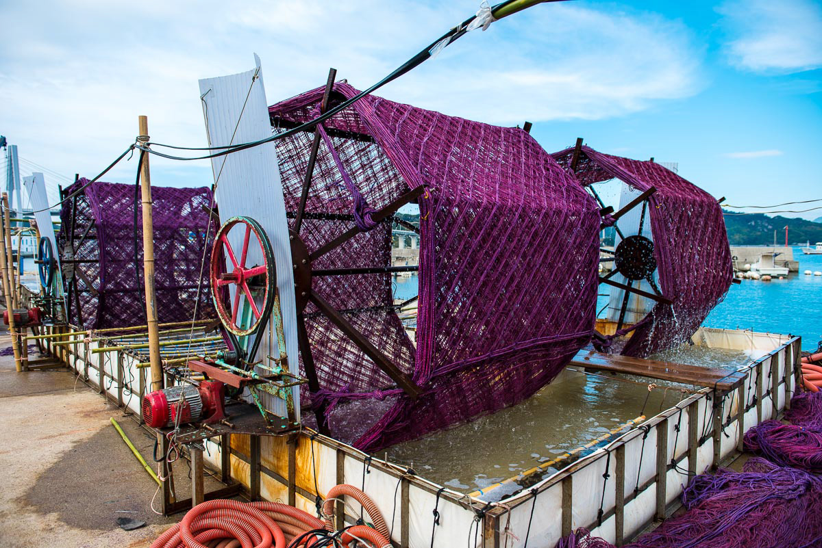 その水車がゆったりと回る姿を見て、ああ今年も海苔の季節が始まったと感じる島の人たちも少なくない。つまりそれは数か月に及ぶ海苔養殖の始まりの光景であり、そしてそのまま、弓削島の風物詩でもあるのだ。