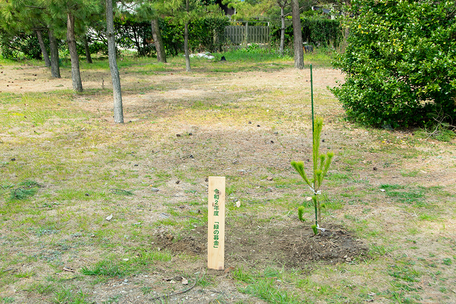 松林の横に伸びる幅6メートルほどの白い砂地の小道を挟んですぐ隣にあるのは、世界の海で活躍する船員を育成しようと島民主導で設立された「弓削商船高等専門学校」のグラウンドだ。