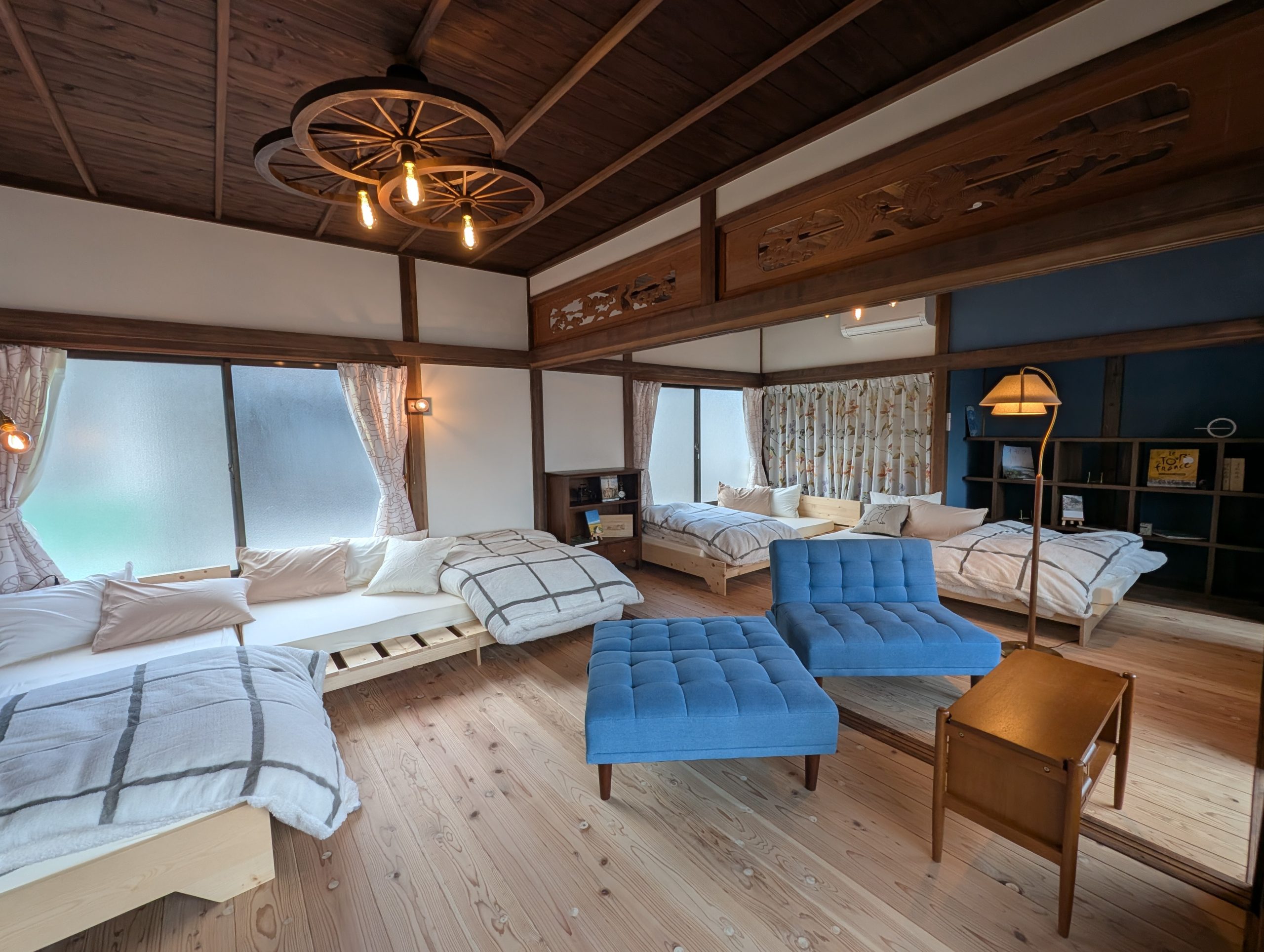 築50年以上の古民家を当時の雰囲気が残る空間を活かしながらリノベーションした一棟貸しの宿で、自転車とレトロをテーマにこだわった内装空間になっています。