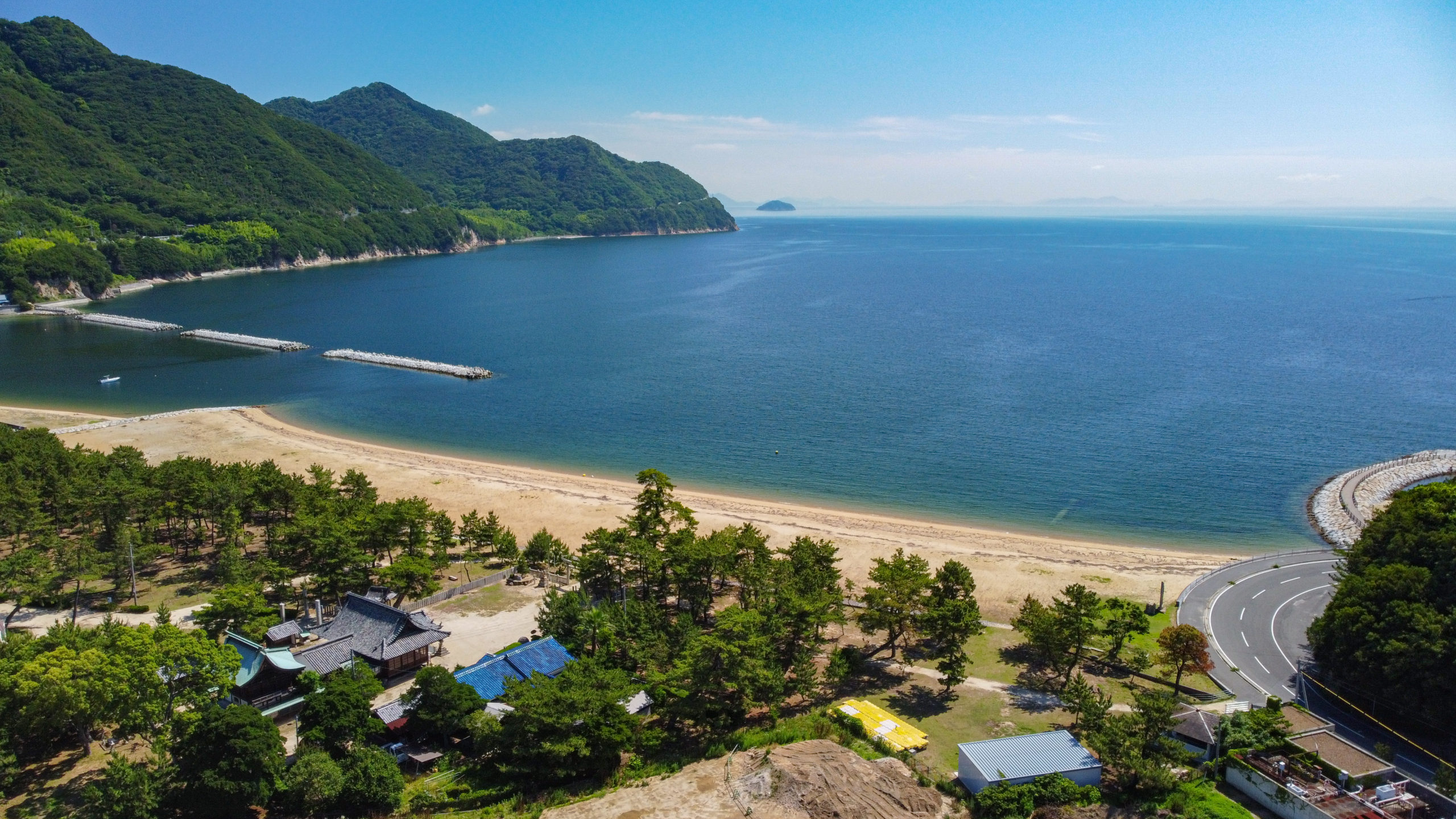 環境省の快水浴場百選に選定され、穏やかな波と美しい砂浜が印象的。